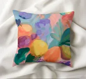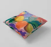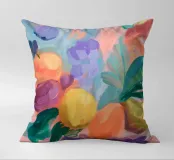 Un'opera d'arte colorata e astratta che cattura la vivacità della natura con pennellate dinamiche. Le vibranti tonalità di rosa, arancione e verde si fondono in un gioco estivo di frutta, foglie e forme floreali. Il motivo irradia gioia di vivere e ricorda le calde giornate estive e la libertà creativa.