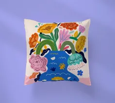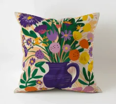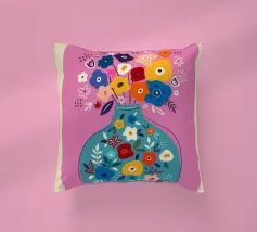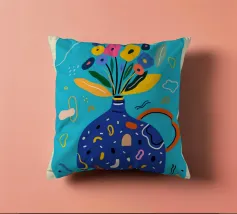 Questo allegro motivo floreale mostra un vaso blu stilizzato pieno di fiori colorati in arancione, rosso, giallo e rosa, incorniciato da una calda tonalità corallo. Il disegno irradia gioia di vivere e armonia ed è perfetto per murales, cuscini, tazze, cover per cellulari e altro ancora. Ideale per chi ama un'estetica fresca e moderna e desidera ravvivare la propria casa con accenti colorati e naturali. Questa composizione floreale senza tempo si adatta a qualsiasi ambiente e a qualsiasi stile di casa.