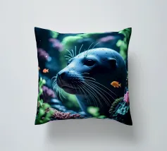 Una giovane foca maculata fluttua curiosa in una colorata barriera corallina, circondata da alghe ondeggianti e da delicati raggi di sole che riempiono l'acqua di una calda luce. Questa serena favola subacquea cattura la tranquillità e la bellezza della vita marina in una scena da sogno. Perfetta per chi ama il silenzio sotto le onde e i momenti magici nella natura.