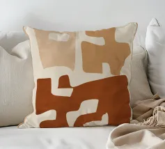 Fluido disegno astratto caratterizzato da diverse forme irregolari e curve di colore marrone, collegate tra loro da spazi bianchi, che creano un senso di movimento e continuità organica su uno sfondo neutro.