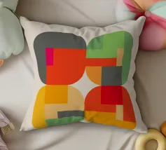 Una vivace disposizione di forme geometriche in vari colori crea un disegno intrigante su uno sfondo di luce soffusa, sottolineando l'arte e la creatività moderne.