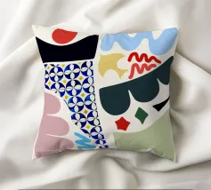 Forme astratte in colori tenui sono collegate tra loro da sottili linee nere, creando una composizione dinamica. Il disegno incorpora varie forme geometriche e organiche, aggiungendo un senso di equilibrio e movimento.