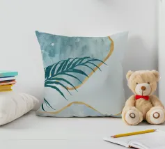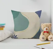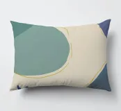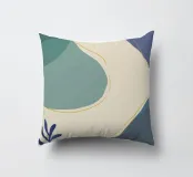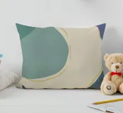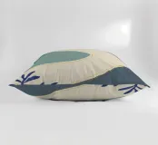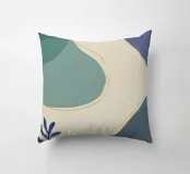 Un'opera d'arte astratta e rilassante che presenta una composizione di forme organiche e fluide in una tavolozza tenue di blu, verde e beige, accentuata da un'unica linea dorata. L'opera è serena, minimalista e sofisticata.