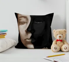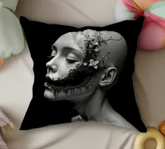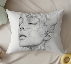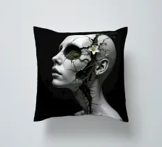 Un'opera d'arte moderna ed espressiva che mostra una figura femminile di profilo, metà umana e metà pietra. Le sottili transizioni tra pelle e struttura simboleggiano profondità emotiva, fragilità e forza allo stesso tempo. La combinazione di colori neutri, beige e grigi, conferisce all'immagine calma ed eleganza, perfetta per ambienti moderni, minimalisti e profondi.