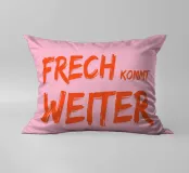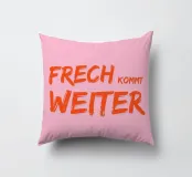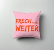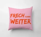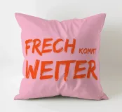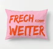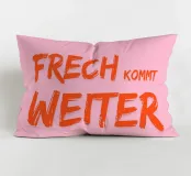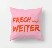 La sfacciataggine vince! Questo poster in arancione su sfondo rosa mostra: un po' di coraggio e di umorismo vi porteranno lontano - perfetto per la casa o l'ufficio.