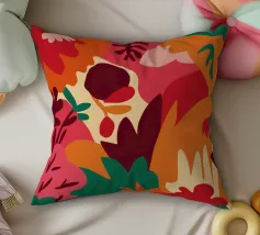 Un'opera d'arte astratta vibrante ed espressiva con una fusione di colori audaci di ispirazione fauvista come il magenta, l'arancione e il nero. Le pennellate e le forme energiche creano un'opera dinamica e appassionata.