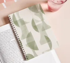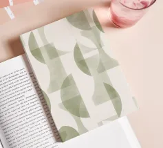 Il disegno presenta un'accattivante disposizione di cerchi, rettangoli e forme astratte di foglie sovrapposte, che alludono sottilmente a forme organiche all'interno della struttura. La texture granulosa aggiunge profondità e interesse visivo.