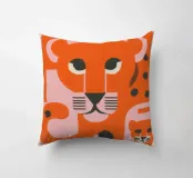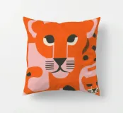Modernità giocosa con un look retrò: questa affascinante composizione riduce i leopardi a forme geometriche di base. Il vivace tricolore - arancione brillante, rosa tenue, grigio intenso - ricorda il design scandinavo degli anni '60 e le illustrazioni naturalistiche di Charley Harper. Le forme bidimensionali e i tratti del viso minimalisti mostrano influenze del Bauhaus e della grafica di metà secolo. Madre e cucciolo appaiono come pezzi di un puzzle astratto, allo stesso tempo carino e sofisticato. Un equilibrio perfetto tra semplificazione ingenua e design perfetto.