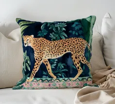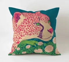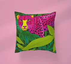Questo non è un normale safari. È un'avventura rosa ambientata in una lussureggiante foresta tropicale, dove gatti, tigri, leopardi, zebre, giaguari e ghepardi vivacizzano le decorazioni murali con un tocco pop-art. In questo quadro dalle linee raffinate, un ghepardo rosa acceso si adagia tra il fogliame verdeggiante, lasciando che la sua tonalità vivace sia al centro della scena. Le foglie tropicali creano un contrasto sorprendente, rendendo questo pezzo un'attrazione immediata per il salotto o lo studio creativo.
