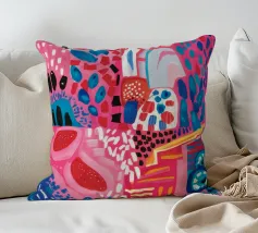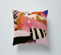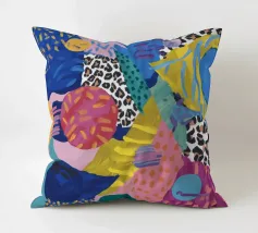 Un collage astratto vibrante ed eclettico caratterizzato da un mix di motivi audaci, tra cui righe, stampa ghepardo e pois. La composizione è un'espressione giocosa ed energica di uno stile moderno bohémien o massimalista.