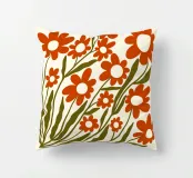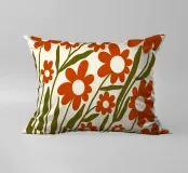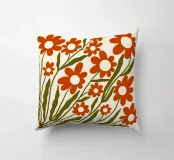 Una gioiosa esplosione di energia vintage: i vivaci fiori arancioni e le foglie verdi catturano l'atmosfera libera degli anni '60. Questo design floreale vivace dona un tocco retrò e un'atmosfera da metà del secolo scorso a qualsiasi interno moderno.