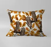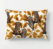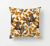 Gufi nella quercia autunnale; disegno senza cuciture dipinto a mano