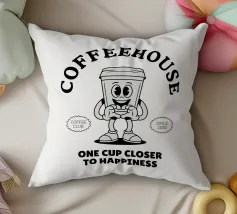 Una tazzina da caffè e un personaggio a forma di cuore sono raffigurati mentre si tengono per mano con la scritta "Ho bisogno di una sola cosa per riscaldare il mio cuore, il caffè".
