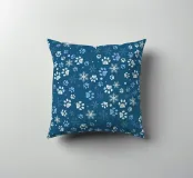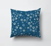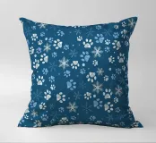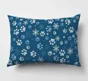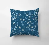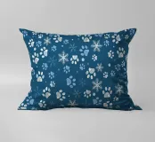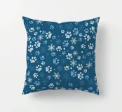 Impronte di zampe con fiocchi di neve su sfondo blu. Disegno di tessuto senza cuciture. Buon anno, inverno, bambini modello di design tessile