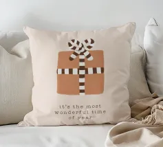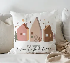 Immagini festive circondano la scritta "It's the Most Wonderful Time of the Year", con personaggi di pan di zenzero, fiocchi di neve e decorazioni a tema natalizio.