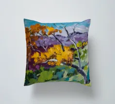 Questo splendido dipinto a olio originale, realizzato con una spatola, cattura la transizione mozzafiato di un paesaggio autunnale. La tecnica a impasto spesso crea una texture ricca e tridimensionale che rende l'opera viva. I tratti audaci di blu e viola vibranti delle colline e del cielo sono splendidamente contrastati dai caldi arancioni e gialli degli alberi autunnali. Questo pezzo è una celebrazione della luce e della struttura, perfetto per aggiungere un tocco di serena e dinamica bellezza a qualsiasi casa o ufficio. È un vero e proprio oggetto da collezione per coloro che apprezzano le qualità espressive e tattili di questa opera.