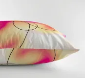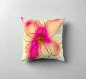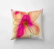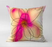 L'immagine mostra una forma astratta, simile a un fiore, composta da sottili linee nere che scorrono libere e fluide su uno sfondo di sfumature di colori vivaci. Le delicate transizioni e i colori vivaci creano un'aura calda ed energica dal carattere floreale.