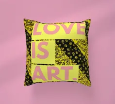 Rosso vivo, giallo brillante e il messaggio: "La vita è migliore con l'arte" Arte che motiva! Un'opera che rende visibile la gioia di vivere.
