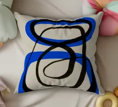Una spessa linea blu serpeggia su uno sfondo neutro, creando un motivo astratto dalle forme audaci e curvilinee. La semplicità del disegno enfatizza il movimento e il flusso della linea continua.