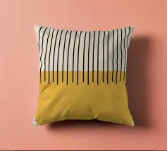 Moderno design astratto caratterizzato da linee verticali nere uniformemente distanziate che si estendono su un'area rettangolare marrone piena, creando un contrasto sorprendente e un effetto visivo dinamico.