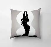 La silhouette di una donna seduta in meditazione con l'energia bianca che scorre intorno a lei. Il contrasto tra luce e buio riflette la consapevolezza e la chiarezza spirituale: perfetto per gli studi di yoga o per le case serene.