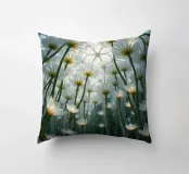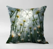 Questo incantevole pezzo cattura una vista mozzafiato, a occhio di verme, di un campo fantastico dove fiori bianchi e traslucidi con delicati petali a ventaglio si protendono verso il cielo. I fiori eterei, che ricordano dente di leone o giglio, sono illuminati dall'interno e proiettano una luce calda e dorata che crea un'atmosfera magica e onirica. Sotto gli steli si intravede un rigoglioso e verdeggiante suolo forestale, che ancorano la scena ultraterrena a un senso di meraviglia naturale. La composizione attira lo sguardo verso l'alto, in direzione di un baldacchino radioso, simile a una stella, che suggerisce una meraviglia celeste o architettonica che funge da sfondo.