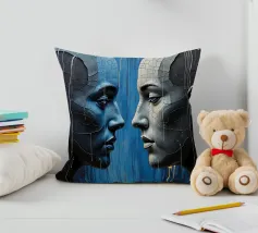 Due androidi bianchi e lucidi quasi si toccano le labbra: lui un robot da combattimento spigoloso, lei una bellezza delicata, quasi da geisha, con accenti rossi. Ispirato a "Ghost in the Shell" di Shirow Masamune, ai robot pin-up di Hajime Sorayama e all'estetica di Blade Runner. Il freddo metallo incontra il tenero desiderio, la tecnologia diventa anima. Questa immagine è pura poesia fantascientifica: erotica, malinconica, futuristica. Perfetto nella sua esecuzione, soprattutto per i gamer loft, i fan del cyberpunk e chiunque non sia freddo nei confronti della cultura giapponese contemporanea, dei manga e degli anime.