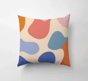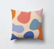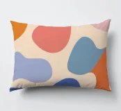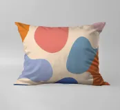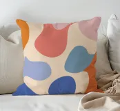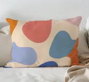 Un'armoniosa composizione astratta di forme organiche sovrapposte in una morbida e calda tavolozza di colori pastello. L'opera d'arte è delicata e moderna, con una qualità ritmica e rilassante.