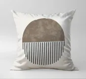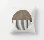 Opera d'arte geometrica minimalista con linee nere e un semicerchio di colore marrone con texture, su uno sfondo beige neutro e morbido. Opera d'arte astratta con texture morbide per gli stili di interni Bohemien, Moderno, Industriale e Basic. Bella per il soggiorno, lo studio e l'ufficio.