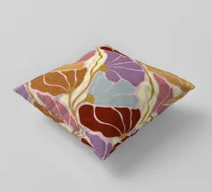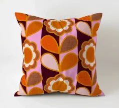 Fate una dichiarazione con questo audace motivo floreale mid-mod. Margherite astratte su steli frondosi sono reimmaginate in uno stile grafico retrò, con accenti rosa, marrone terra e ocra su uno sfondo viola intenso.