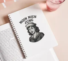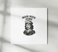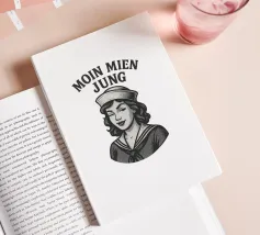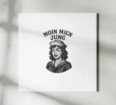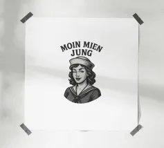 Un design marittimo ironico per chi vuole indossare "Moin mien Jung" con il sorriso sulle labbra. L'impertinente marinaio in stile streetwear vintage è perfetto per gli amanti della costa, dell'aurora boreale e per tutti coloro che vogliono il fascino del porto sulla loro camicia o felpa con cappuccio.