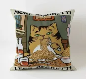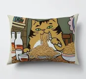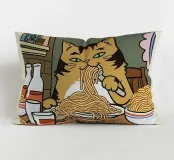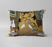 Questa giocosa opera d'arte raffigura un gatto soddisfatto che si gode un abbondante piatto di spaghetti, irradiando conforto e umorismo. Con il suo stile retro comico e la frase spiritosa "Più spaghetti, meno rimpianti", ricorda di assaporare i semplici piaceri della vita. Perfetto per gli amanti del cibo, per gli appassionati di gatti e per tutti coloro che apprezzano una motivazione spensierata.