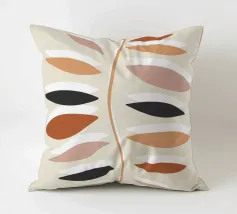 Un disegno botanico stilizzato presenta foglie nere e crema su uno sfondo caldo e abbronzato. Il contrasto tra gli elementi scuri e quelli chiari mette in risalto le forme semplici e suggestive delle foglie.