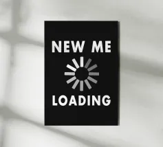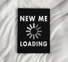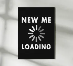 Un design elegante e moderno con una barra di avanzamento riempita a metà, di colore verde brillante. La frase "New Me Loading" è scritta in grassetto, con una tipografia futuristica, sopra la barra. Elementi sottili di ispirazione tecnologica, come i modelli di circuito, gli accenti di pixel e i gradienti dinamici sullo sfondo, creano un senso di trasformazione e crescita. Quest'opera d'arte simboleggia il progresso, il miglioramento personale e i nuovi inizi.