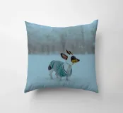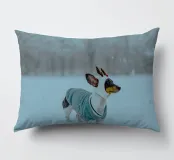 Il cagnolino dal pelo candido camminava sulla neve soffice. Sulla testa portava una calda sciarpa bianca, arrotolata intorno alle orecchie e alla fronte, e una maglietta blu, dall'aspetto carino e caldo. Piccole impronte erano impresse sul sottile strato di neve, lasciando dietro di sé piccole e graziose scie. I suoi occhi scintillavano, il suo piccolo naso nero si agitava nel vento freddo, creando un'immagine divertente e commovente nel mezzo della scena invernale.