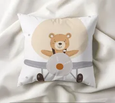 Questo simpatico motivo mostra un allegro orso che fluttua dolcemente nell'aria con un paracadute colorato. I tenui colori beige e pastello in combinazione con i motivi delicati e le nuvole minimaliste conferiscono a questa illustrazione un fascino senza tempo. Un disegno perfetto per gli amanti dei simpatici animali e degli scenari da sogno.Simpatico motivo con un orso fluttuante