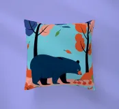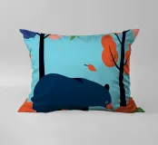 Godetevi la bellezza naturale di una foresta autunnale con questa illustrazione di un orso in cerca di cibo. I colori caldi e il design minimalista creano un'atmosfera pacifica e rasserenante.