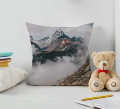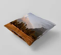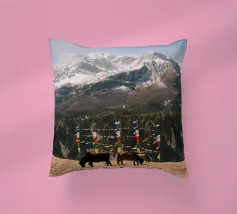 Un sentiero sterrato si snoda attraverso un campo aperto verso un piccolo villaggio himalayano, annidato alla base di imponenti montagne innevate. Due escursionisti si dirigono verso l'insediamento, il loro viaggio è incorniciato da un terreno accidentato e dal vasto cielo sovrastante. Il contrasto tra le tonalità della terra in primo piano e le cime ghiacciate sullo sfondo evidenzia la cruda bellezza della regione dell'Annapurna.
