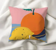 Una moderna natura morta di due pere gialle in una ciotola con un audace motivo a zig zag in bianco e nero. Lo sfondo a scacchi rosa e viola aggiunge un ulteriore livello di grafica giocosa alla composizione.