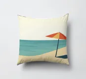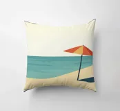 Celebrate il calore dell'estate con questo poster Vintage Beach. Il suo stile elegante e retrò è caratterizzato da un ombrellone, sabbia dorata e mare turchese. Una decorazione estiva elegante e minimalista, ideale per gli amanti del mare.