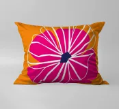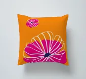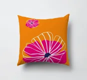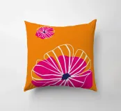 Date più colore alla vostra vita! Un fiore rosa sbocciato su sfondo arancione per tutti coloro che amano la natura, i fiori e i colori vivaci. Illustrazione realizzata a mano con amore e dedizione.