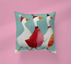 Questa festosa opera d'arte natalizia raffigura quattro giocose oche che indossano cappelli e sciarpe a maglia colorate e che danzano gioiosamente insieme in una foresta innevata di pini. Dipinto a mano in morbido acquerello, cattura lo spirito allegro degli animali del bosco in inverno. Perfetto per tessuti, carte da parati e accoglienti progetti stagionali, questo affascinante disegno aggiunge calore vintage e stravaganza alle tradizioni natalizie. Create da Uta Naumann, le oche portano la magia e l'allegria nostalgica delle feste, rendendole una scelta deliziosa per le celebrazioni festive, l'artigianato invernale e le decorazioni ispirate al bosco.