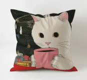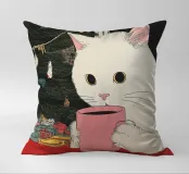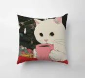 Questa bevanda nella tazza da caffè è vino caldo? Questa bevanda sembra molto invitante, ma fate in fretta o questo simpatico ed elegante gatto bianco giapponese berrà tutto il vino in un sorso, per celebrare questa accogliente notte invernale.
