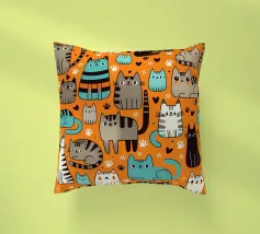Un divertente e colorato disegno di gatti con giocosi felini color arcobaleno in un design vivace e stravagante. Perfetto per gli amanti dei gatti, per i proprietari di animali e per tutti coloro che amano le decorazioni vivaci e allegre. Questo vivace motivo aggiunge un tocco di allegria e spensieratezza a qualsiasi spazio, rendendolo ideale per accoglienti complementi d'arredo, camere per bambini e pezzi unici. Creato da showmemars