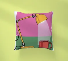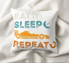 Un'ambientazione accogliente è caratterizzata da un cuscino, una lampada e due tazze, che evocano un senso di relax. La frase "Riposare, ricaricare, ripetere" rafforza il tema della calma e del ringiovanimento.