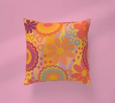 Aggiungete un tocco di potere floreale retrò al vostro spazio con questa stampa d'arte ispirata agli anni '70 con motivo a margherite. Le vivaci margherite rosa e arancioni creano un design giocoso e accattivante. Questo motivo floreale vintage ripetuto è perfetto per aggiungere un tocco di fascino nostalgico a qualsiasi ambiente. Creato da showmemars