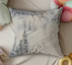 Questa suggestiva immagine invernale mostra una baita innevata circondata da maestosi abeti e cime impervie. Davanti alla baita, sciatori e bambini scivolano felici sulla neve, conferendo alla scena un'atmosfera vivace ma tranquilla. I colori tenui del cielo in contrasto con il bianco del paesaggio creano un motivo invernale armonioso e romantico, ideale per chi ama la magia della montagna. Perfetto per murales, poster, tazze, cover per cellulari, cuscini, tende da doccia e T-shirt.