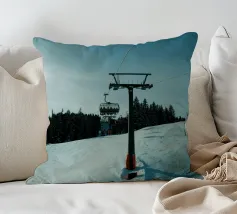 Sciatore in ascensore fotografato dal basso sulle Alpi (Spitzingsee), di Simon Koy.