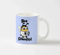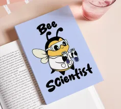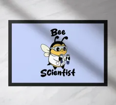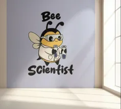 Una simpatica ape in camice e occhiali tiene in mano due provette piene di pozioni colorate. L'illustrazione gioca sul gioco di parole "Bee Scientist", unendo scienza e simpatia in un'unica immagine. Perfetto per chi ama la biologia, la chimica o semplicemente le api con un look da scienziato!