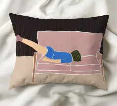 Questo disegno mostra una donna dai capelli viola che si sdraia con disinvoltura su una poltrona giallo senape: rilassata, sicura di sé, completamente immersa nel momento. Il contrasto tra lo sfondo scuro, il pavimento rosa e la poltrona di velluto giallo crea un linguaggio visivo potente e moderno dal fascino retrò. "Velvet Chair" è sinonimo di calma, compostezza e un tocco di nonchalance - ispirata alla vita reale, stilizzata in un chiaro look bujaboom. Perfetta per il salotto, lo studio o l'atelier, per tutti coloro che amano l'arte con carattere e attitudine.